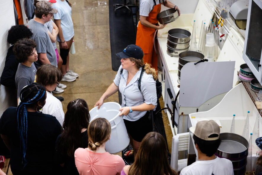 ShoreRivers director of education Suzanne Sullivan shows ninth-grade students from St. Michaels Middle High School a bucket of cultivated juvenile oysters.A spawning female oyster claps sporadically to release eggs at the Horn Point Laboratory.