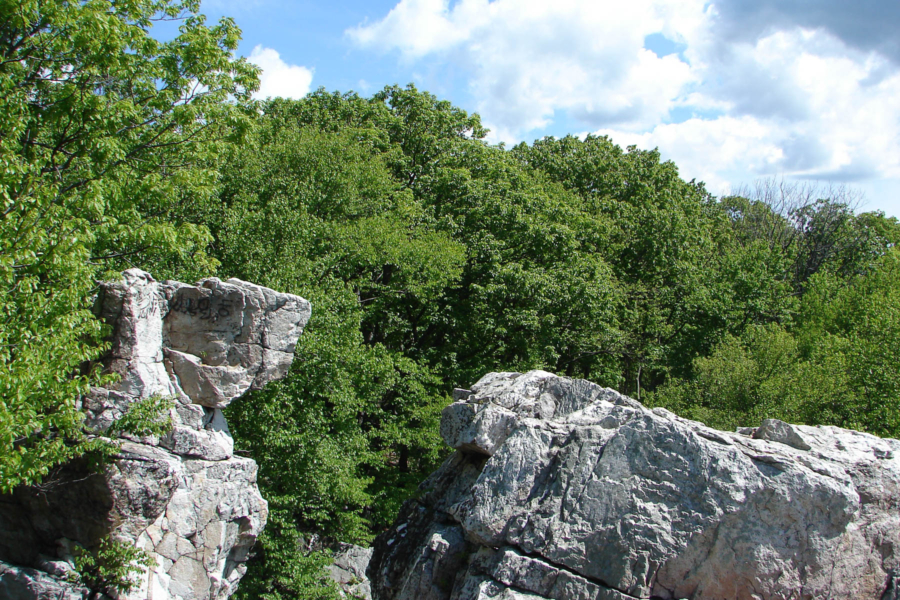 Wolf Rock at Catoctin Mountain Park gets its name from the wolf-shaped boulder at the center of the field. This rock is the only place in the park that is open for rock climbing. (Photo courtesy National Park Service)