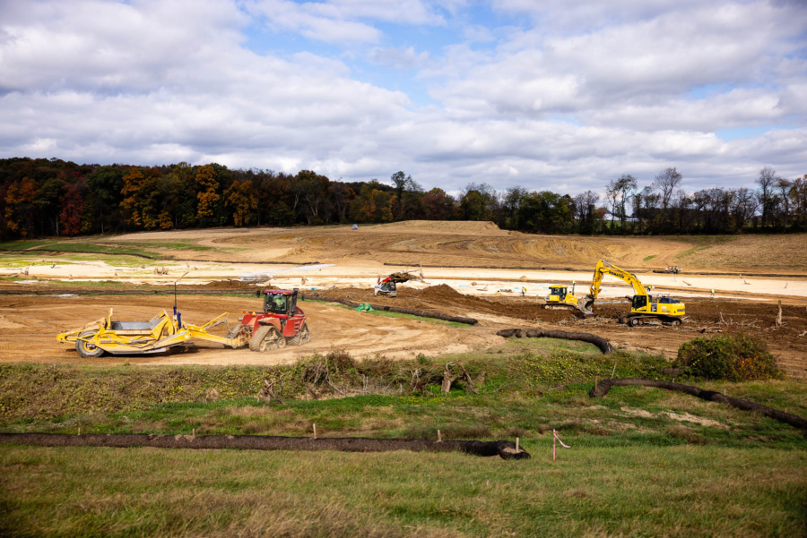 Finally, we come to Green Hill Farm, whose restoration project began in 2024 and remains under active construction. This project will create over seven acres of wetlands and restore 3,900 linear feet of stream. Large construction equipment is currently clearing the project site, lowering the floodplain to its historic level. Although this project resembles a typical construction zone, it holds exceptional potential for restoring a historic floodplain–providing habitat, cleaning water and reducing impacts downstream. This project will focus on creating a large-scale wetland and riparian grass buffer on Conowingo Creek and its tributaries. This project was entirely funded by the PENNVEST CWPP.