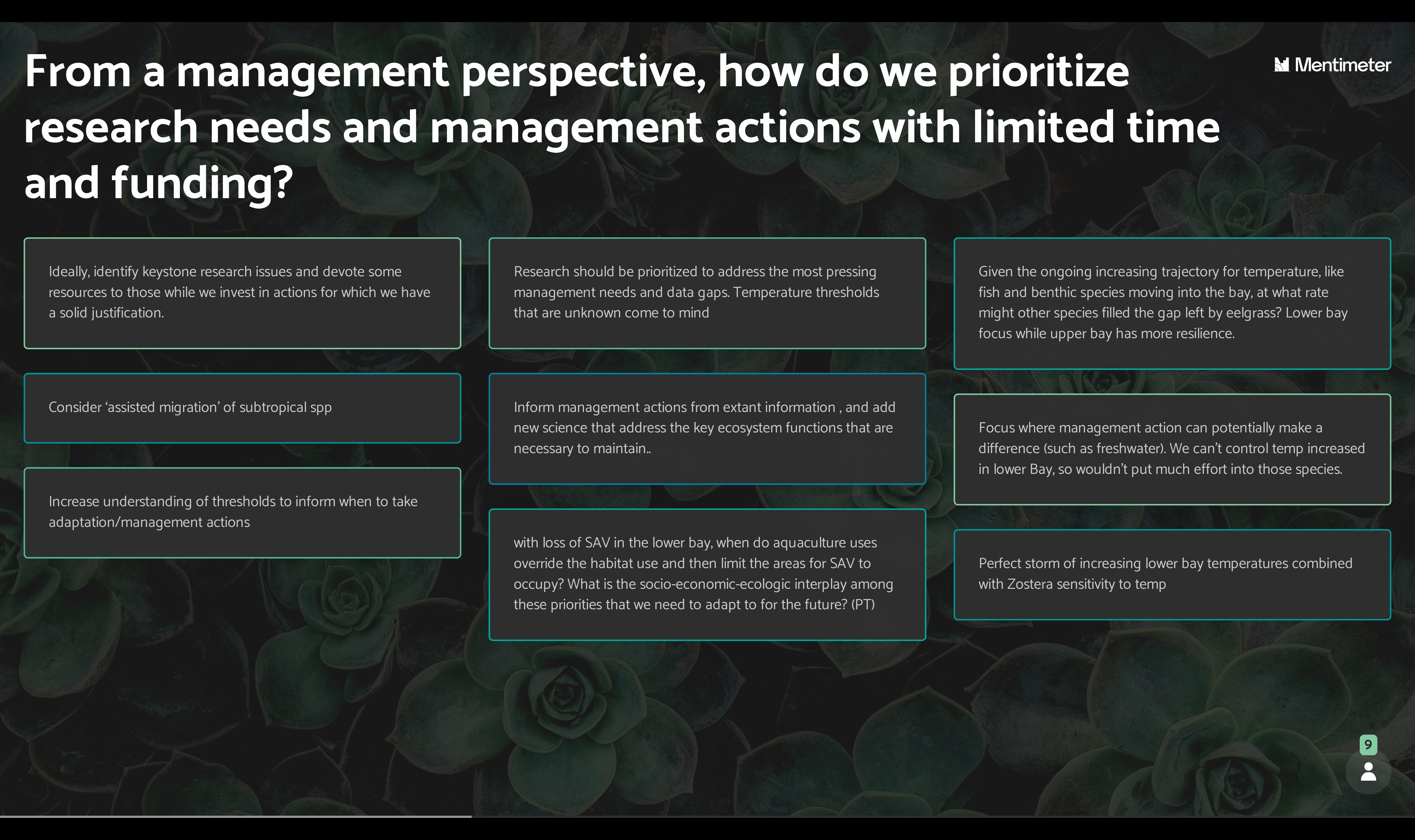- Needs for Enhancing Monitoring Networks for Tidal Bay Water Temperature ChangeImpacts (#10): Menti Question #2 [JPG, 1.2 MB]